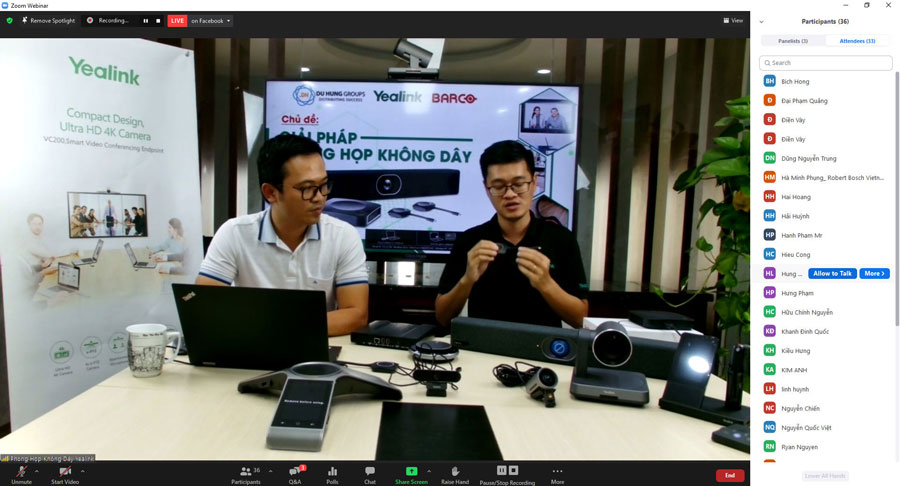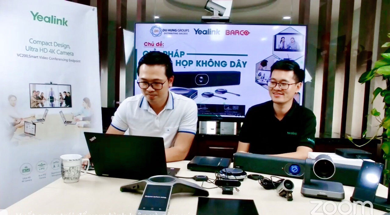 Vào ngày 17/6/2021 vừa qua, Du Hưng đã kết hợp cùng với Yealink để tổ chức buổi Webinar về chủ đề: “Giải pháp phòng họp không dây cho doanh nghiệp”. Buổi hội thảo do ông Hồ Ngọc Ẩn – CEO Du Hưng Group – nhà phân phối Yealink tại Việt Nam cùng với Mr.Lợi – đại diện thương hiệu Yealink tại Việt Nam làm diễn giả.