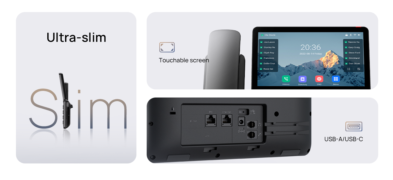 Bên cạnh đó, Yealink T77U sở hữu thiết kế mỏng gọn, màu xám sang trọng, chân đế điều chỉnh linh hoạt và hỗ trợ treo tường khi cần. Không chỉ là một chiếc điện thoại IP, T77U còn góp phần tăng tính chuyên nghiệp và hiện đại cho không gian văn phòng doanh nghiệp.
