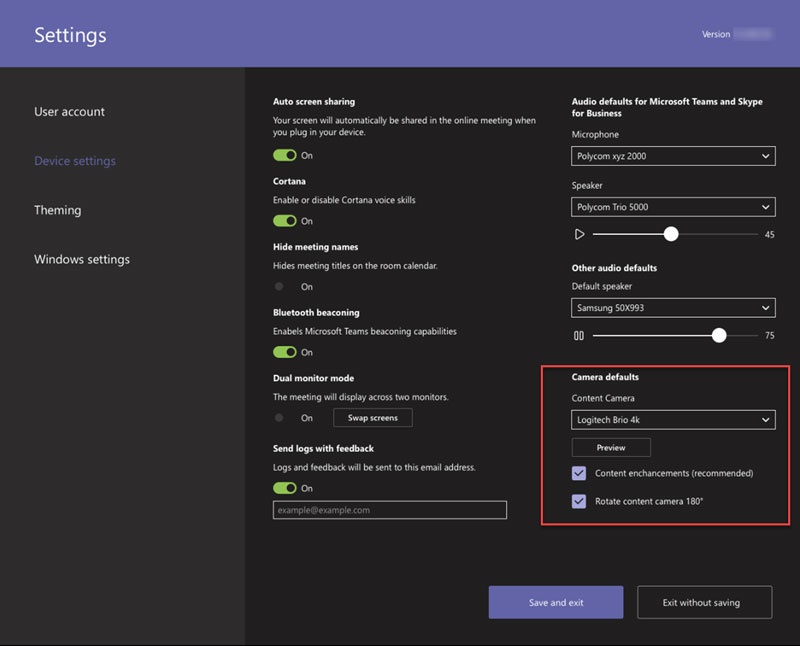 , Đăng nhập với tư cách là Admin sau đó lựa chọn Device Settings. - Trong tùy chọn Camera Defaults, nhấn chọn vào content camera sau đó chắc chắn là tùy chọn Content enhancements đã được chọn.