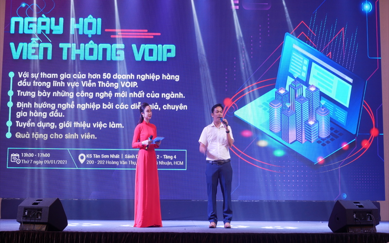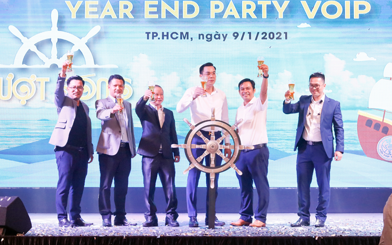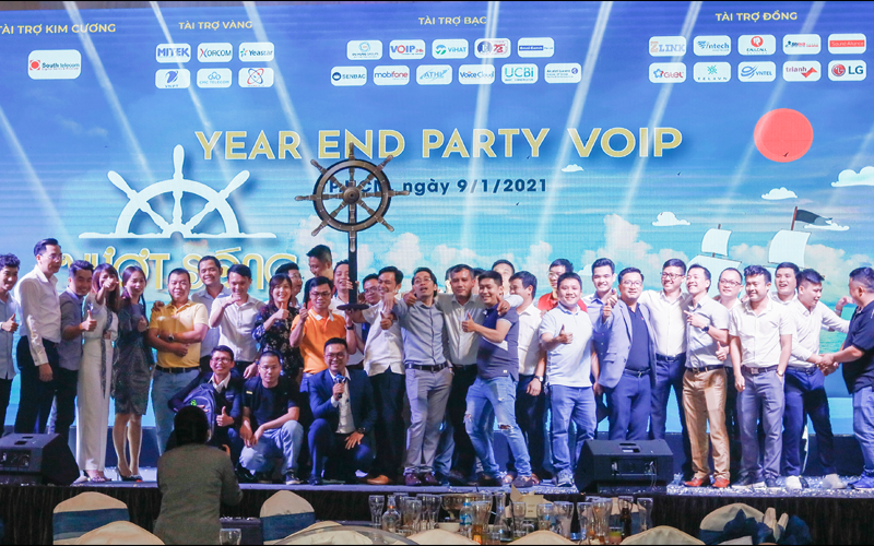 Sau chương trình dành cho sinh viên là lúc buổi tiệc Year End Party VOIP 2021 – với chủ đề “Vượt Sóng” được bắt đầu. Với những khách vời đến từ các doanh nghiệp trong ngành. Đặc biệt hơn những năm khác, buổi tiệc còn có sự góp mặt của 2 ca sĩ là Lâm Hùng và Thẩm Thuý Hà đến để góp vui với những tiết mục văn nghệ. Không khí sôi động và các khách mời có dịp “quẩy” hết mình trong đêm tiệc.