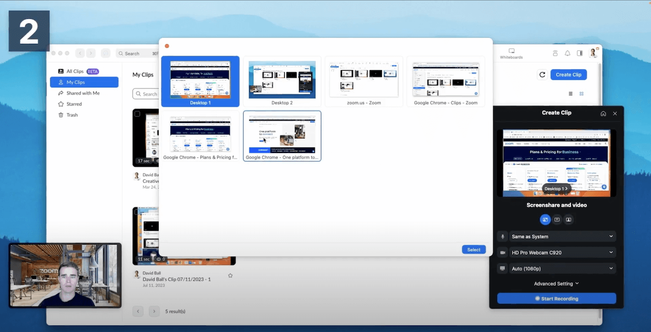 Bạn có thể chọn ghi lại chính mình, màn hình của bạn hoặc cả hai. Bạn cũng có thể kiểm soát các cài đặt nâng cao như Nền ảo và khử tiếng ồn. Sau khi thiết lập tùy chọn của bạn, hãy tiếp tục và bắt đầu ghi.