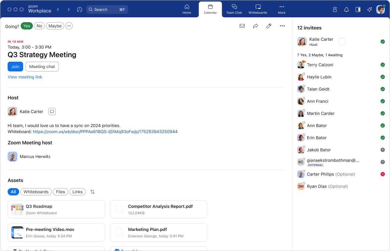 Rất nhiều ngày làm việc của chúng ta xoay quanh các cuộc họp, từ việc chuẩn bị, tham dự cho đến hành động dựa trên các quyết định được đưa ra trong cuộc họp. Trong Zoom Workplace, bạn có thể kết hợp lịch và cuộc họp của mình trong một thẻ được sắp xếp hợp lý, qua đó giúp bạn dễ dàng chia sẻ thông tin và cộng tác cả trước và sau cuộc họp.